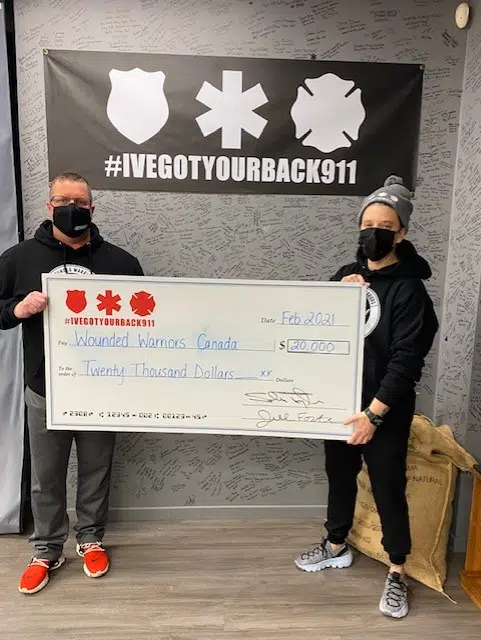 In total, $15,000 was donated in memory of Calgary police officer Sgt. Andrew Harnett, killed during a traffic stop New Year’s Eve and another $20,000 was donated to Wounded Warriors Canada.