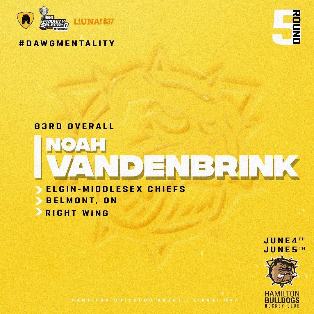 Vandenbrink, who is a Belmont native was selected 83rd overall by the Hamilton Bulldogs.