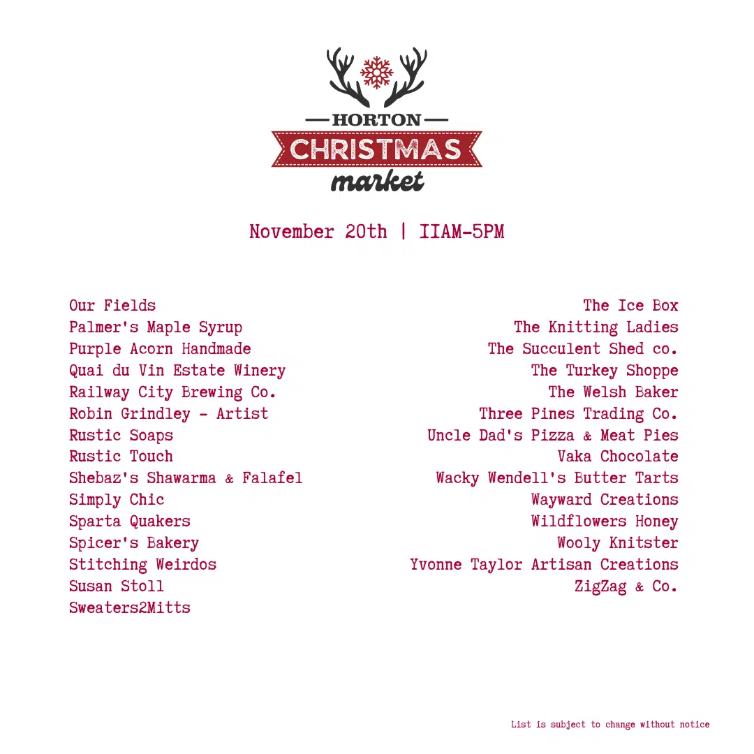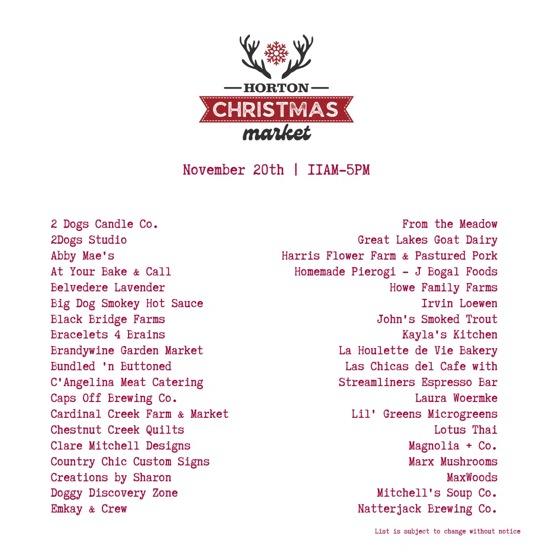 A complete list of vendors for the Horton Christmas Market can be found below…