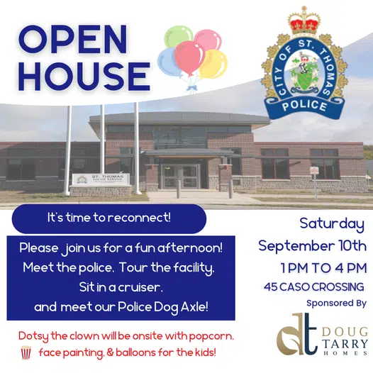 That was Tanya Calvert, Corporate Communications Coordinator, who invites residents of St. Thomas to stop by the police station from 1 to 4 p.m. on Saturday, September 10th.