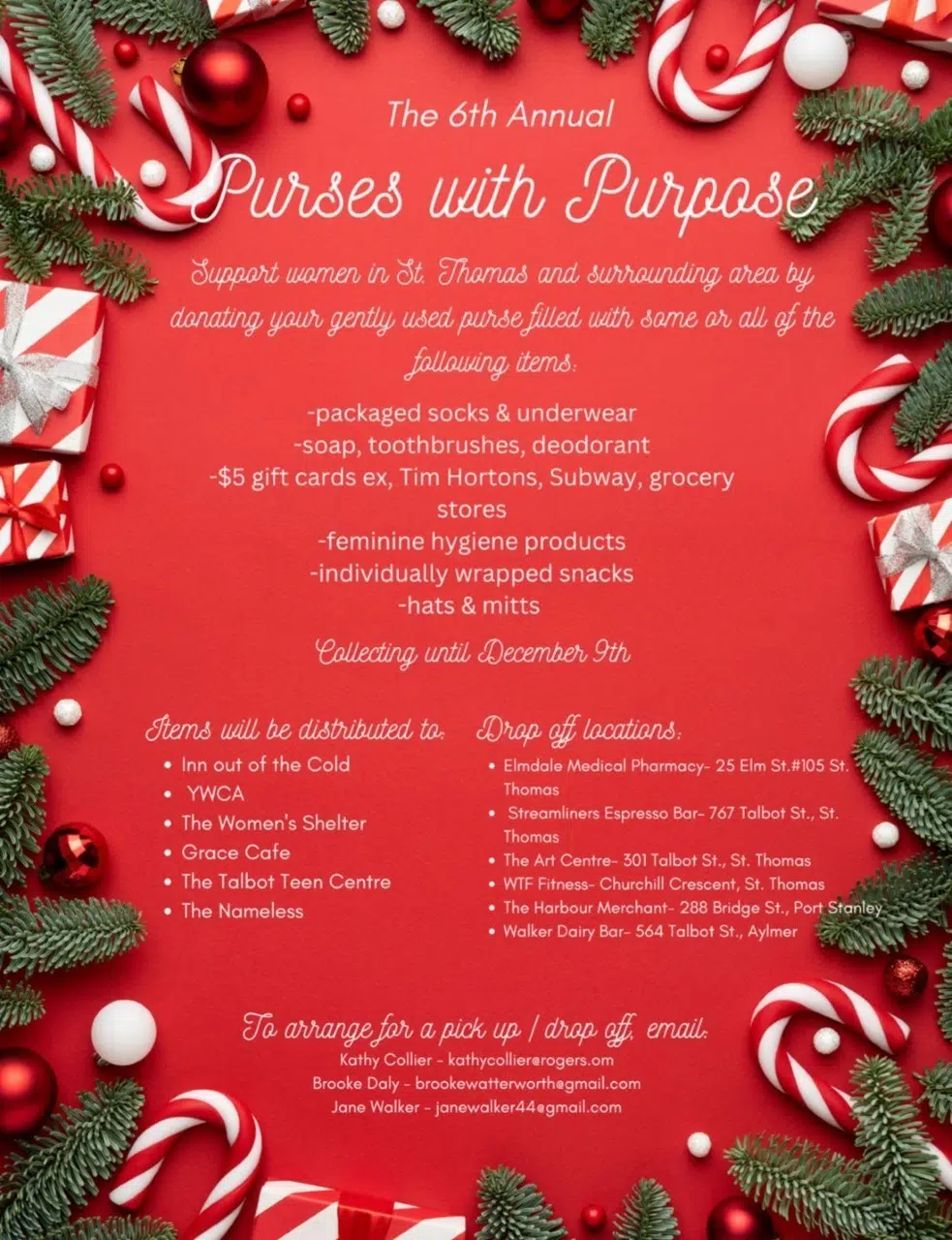 Six years later Purses with Purpose collects 200 or more purses at this time of year to stuff them with useful items to support women in St. Thomas and area.