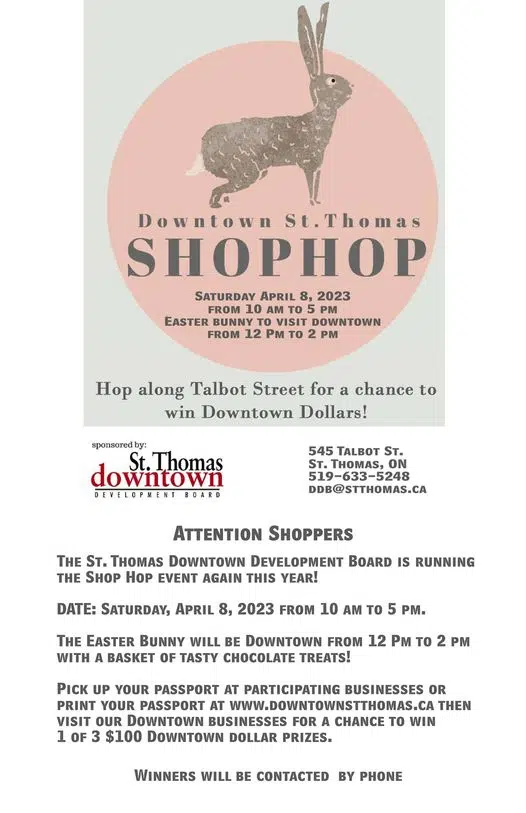The St. Thomas Downtown Development Board is back with the 4th Annual Easter Shop Hop, running from 10 a.m. to 5 p.m.