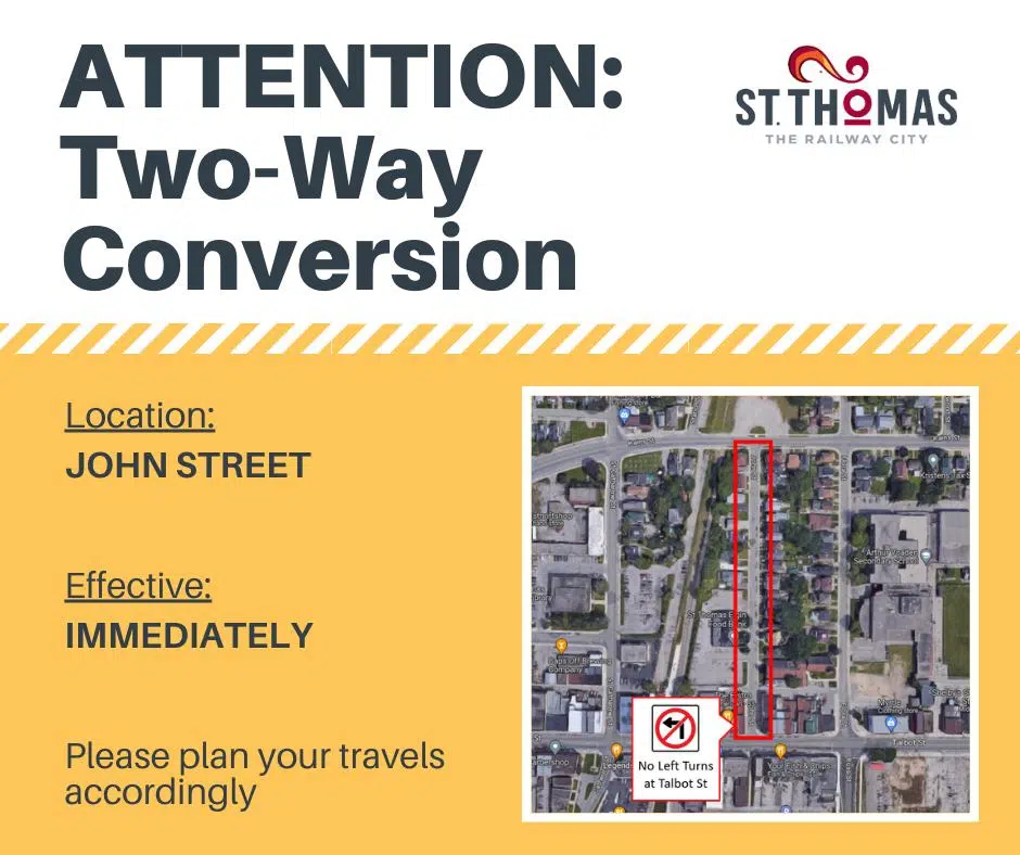 It’s been designated a one-way street since the 1950s, but as of Wednesday this week, John Street is now bi-directional due to Talbot Street reconstruction.