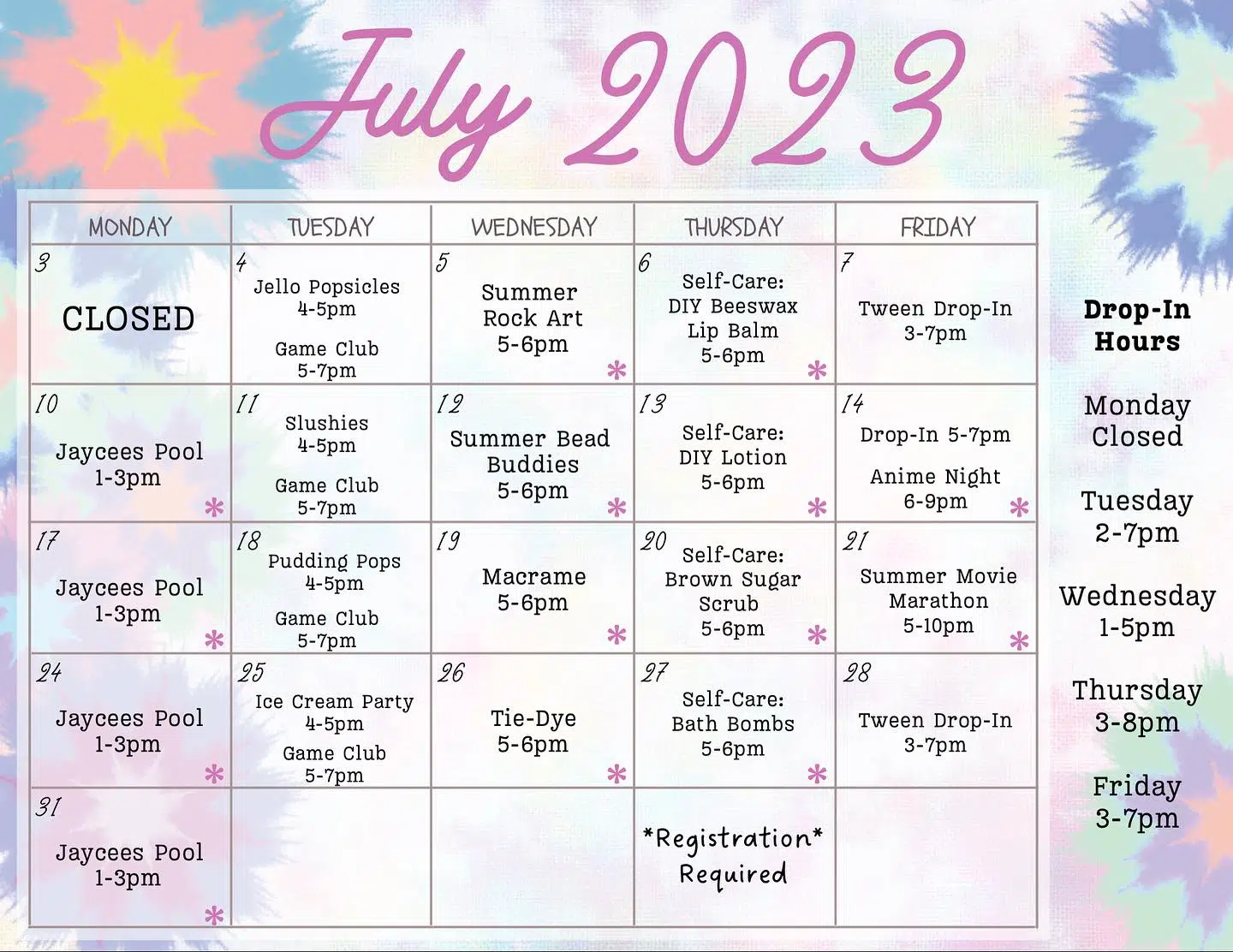 From movie marathons to a tie dye day, Dumochelle says they have something for everyone.