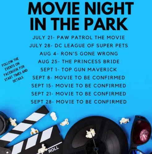 They’ll begin Friday night with a showing of Paw Patrol The Movie next to the dance pavilion, kicking off around 8:30.