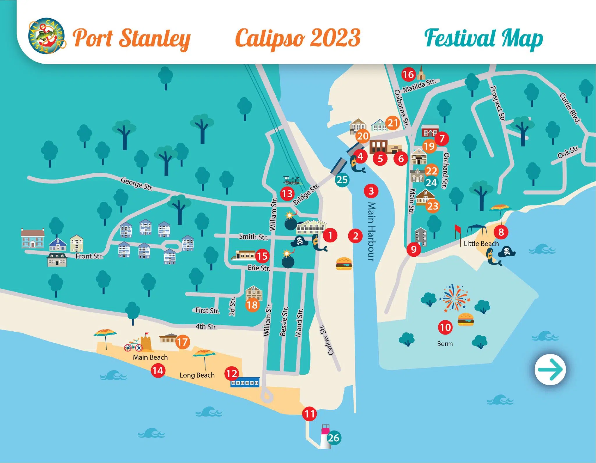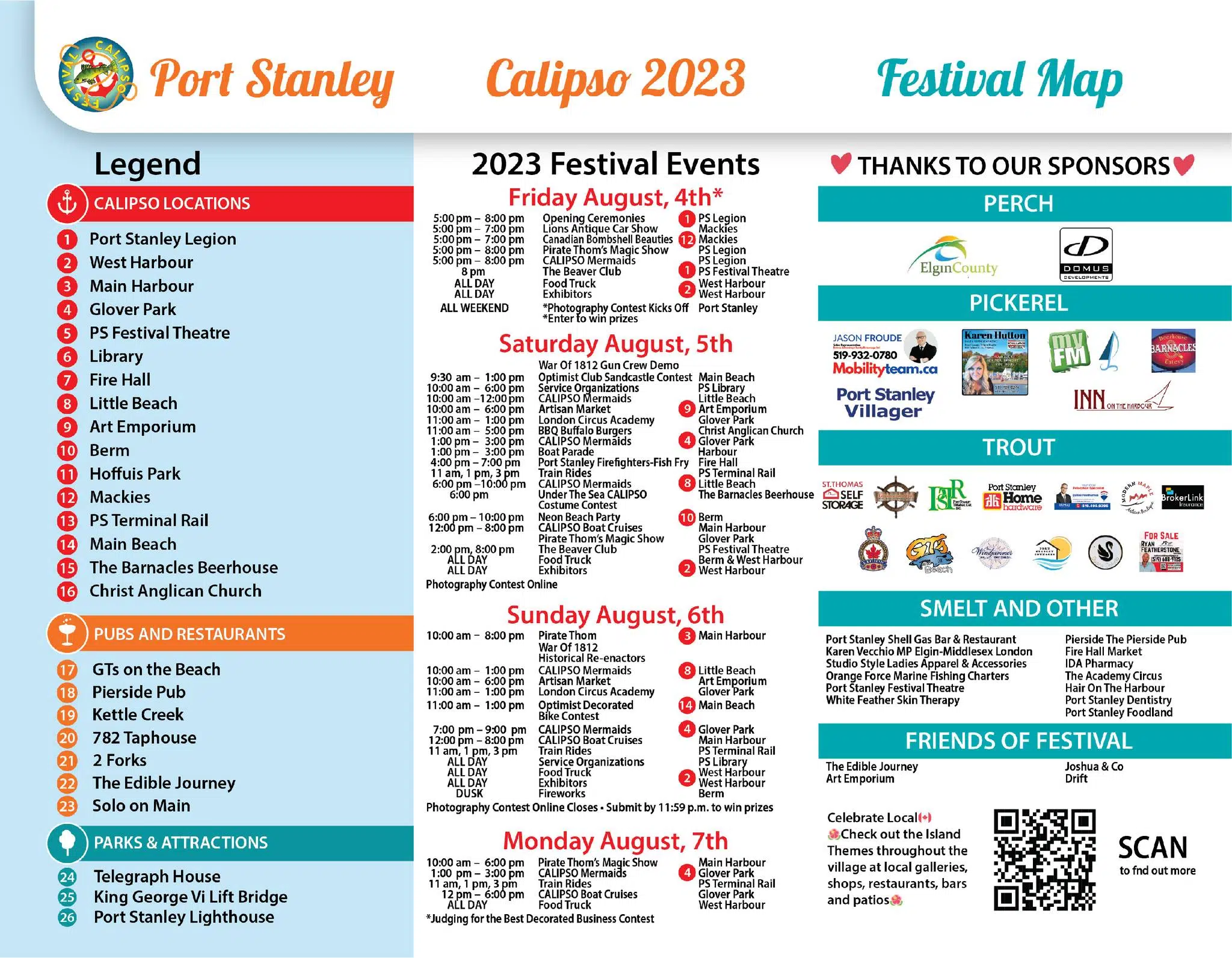 The 2023 CALIPSO Festival will run August 4th to 8th throughout the village of Port Stanley, with more details available here and on Facebook!