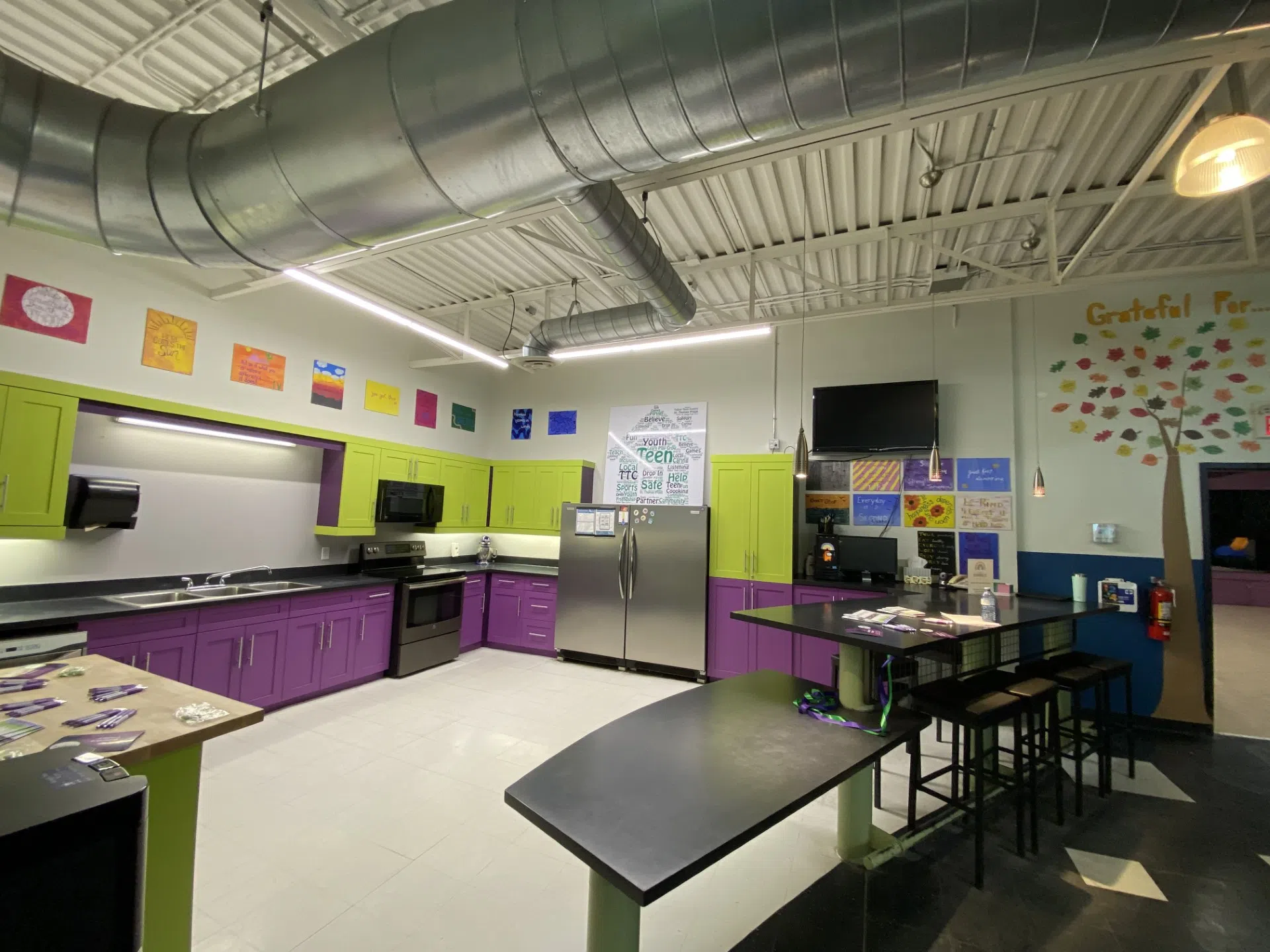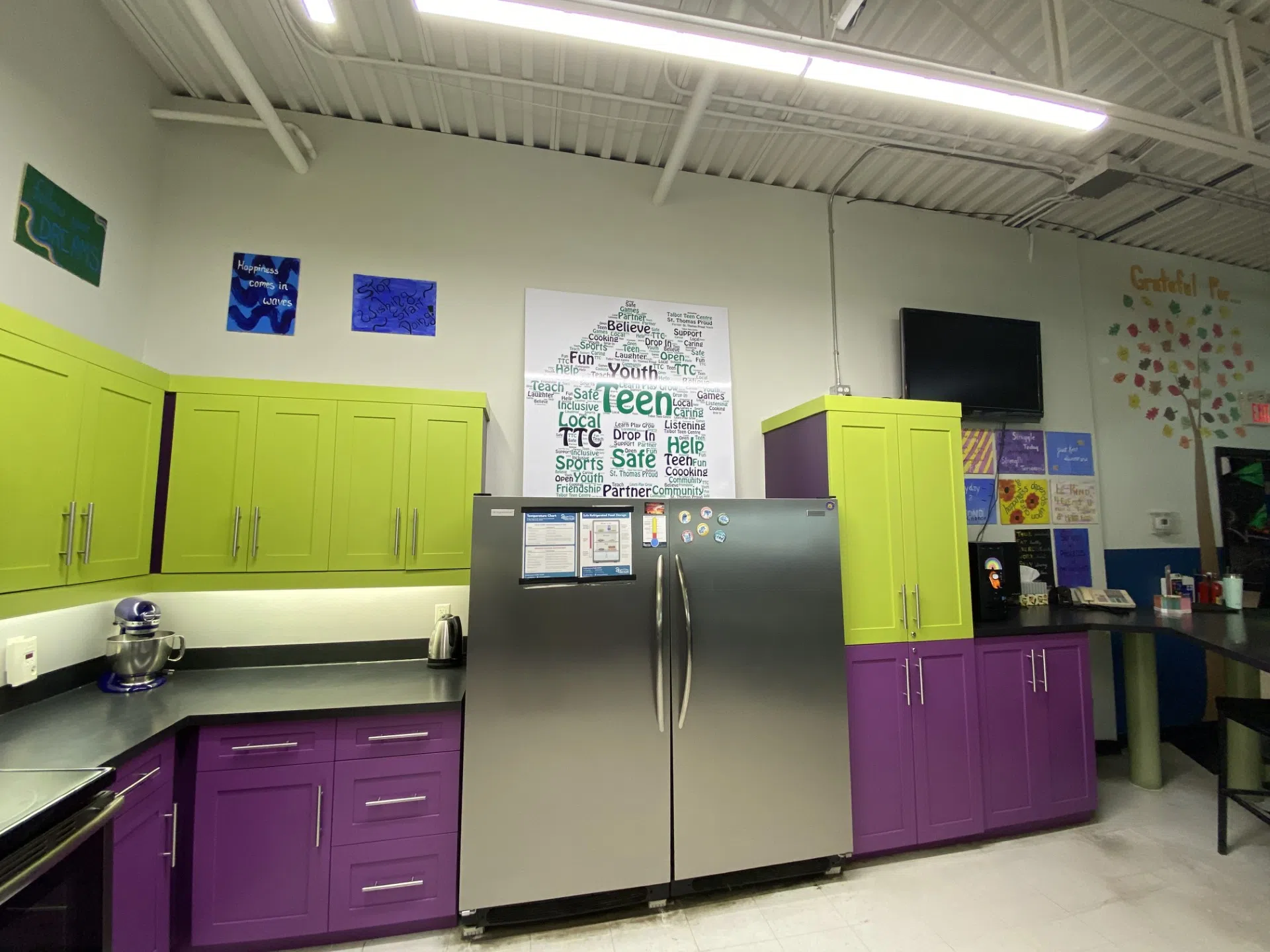 The kitchen serves as a vital space for the centre, where youth have access to healthy snacks and can learn essential cooking skills for a healthier future.