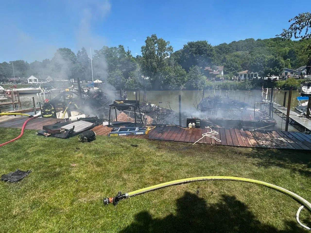 Three boats were totally destroyed in a weekend fire at a Port Stanley marina.