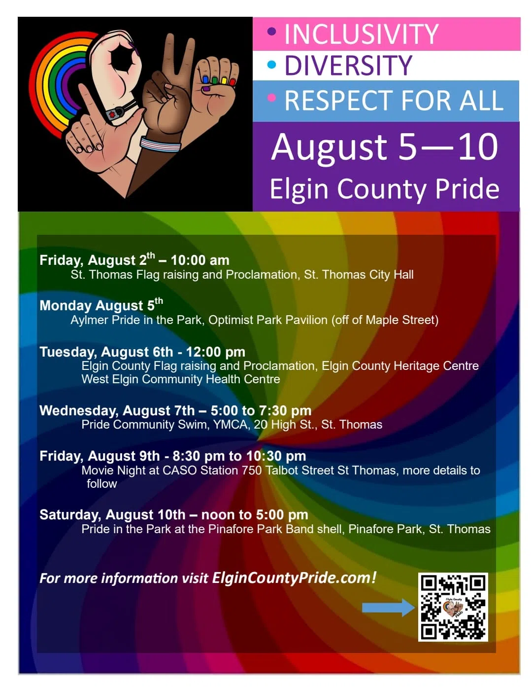 Running August 5th to 10th, the week is a celebration of acceptance, diversity, inclusivity and respect for all across St. Thomas and Elgin County.