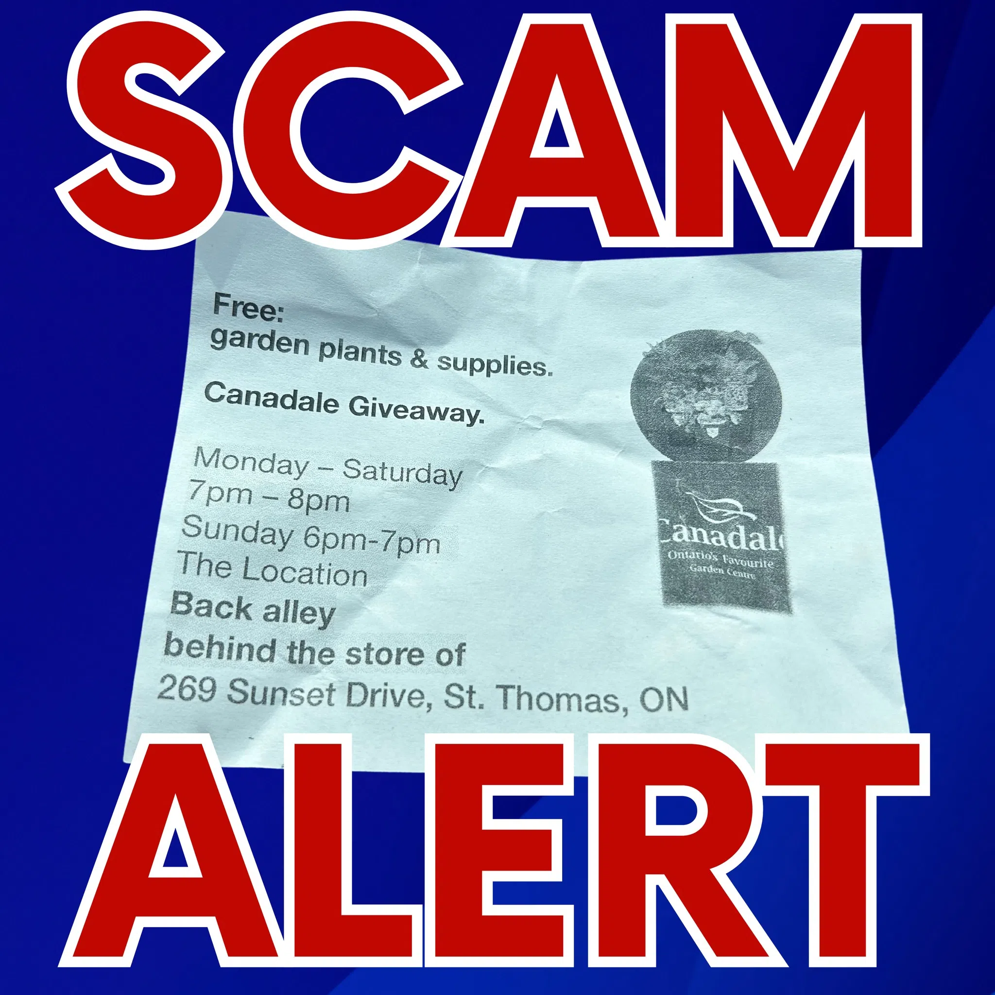 Canadale Nurseries is alerting the community about a fraudulent flyer circulating locally, falsely advertising a Canadale giveaway.