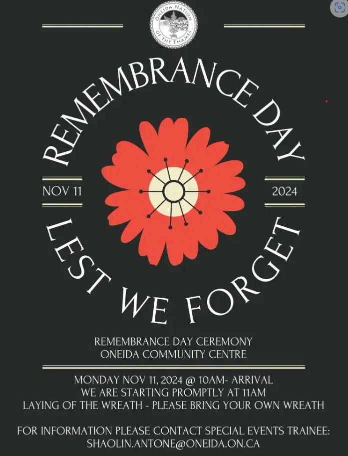 In addition, a Service of Remembrance will be held Monday Nov. 11 at Oneida Nation of the Thames.