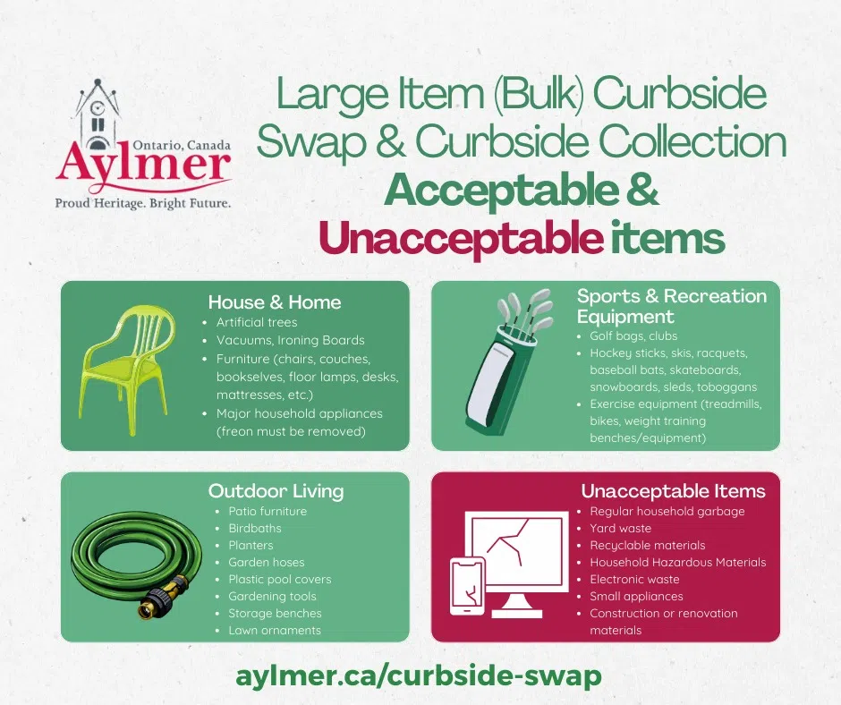 One person’s trash could be another’s treasure during Aylmer’s spring Curbside Swap, happening May 16th through 19th.