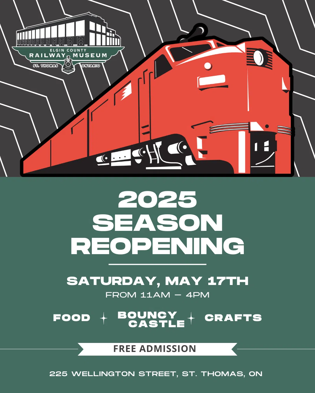 The Elgin County Railway Museum is inviting the community to climb aboard for a full day of family fun at its grand reopening celebration on Saturday, May 17th, from 11 a.m. to 4 p.m.