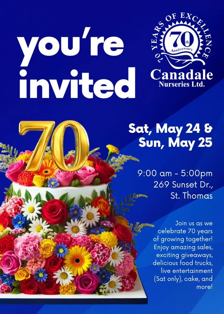 Canadale Nurseries is marking a major milestone this year as the St. Thomas-based garden centre celebrates 70 years of growing deep roots in the community.