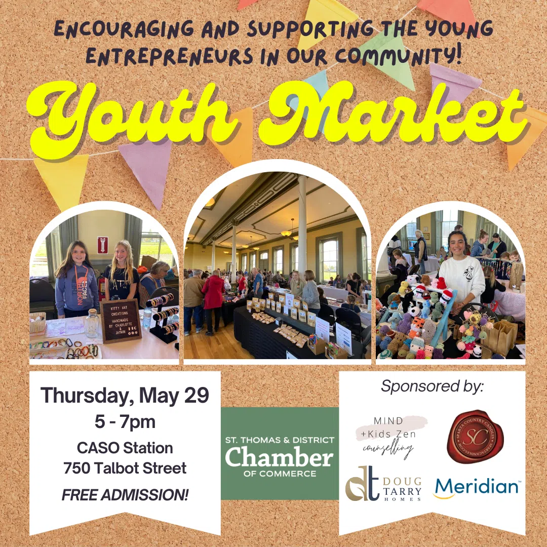 The next generation of business leaders will be front and centre this Thursday, May 29th, as the St. Thomas & District Chamber of Commerce Spring Youth Market returns to the CASO Station.