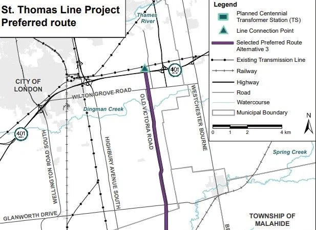 Hydro One has completed the draft Environmental Study Report for the St. Thomas Line project.This transmission line will run from an existing Hydro One transmission corridor north of Highway 401 in London to the Yarmouth Yards industrial park.The preferred Route 3 follows Old Victoria Road south out of London. It is one of three proposed … Continue reading Public input sought for new Hydro One St. Thomas transmission line