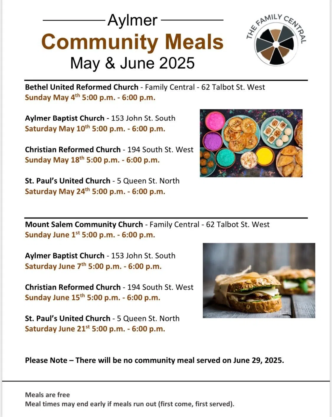 And Don’t Forget About Community Meals in both St. Thomas and Aylmer!