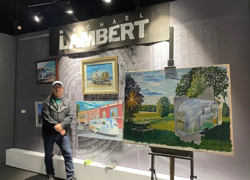 “For 30 years or so, I’ve been dabbling with aluminum as one of the media in my artwork,” explains Lambert,” and that love affair of using aluminum turned into an interest in painting reflective surfaces. And in the case I think we’re talking about today, it’s the reflective magical qualities of a polished vintage Airstream travel trailer.”