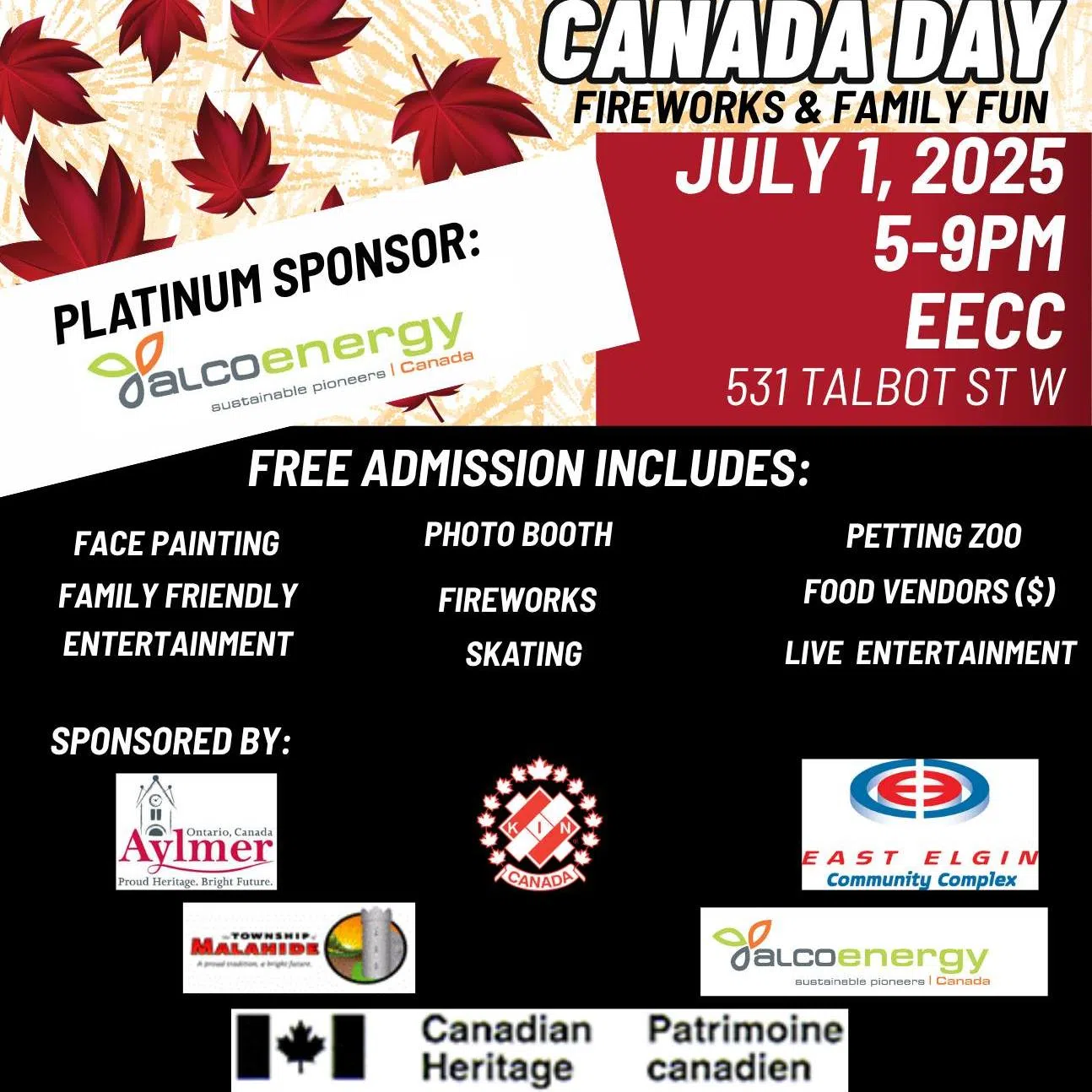 Events return to the East Elgin Community Complex from 4 to 9 p.m., before the Aylmer Kinsmen’s fireworks display lights up the sky at dusk.