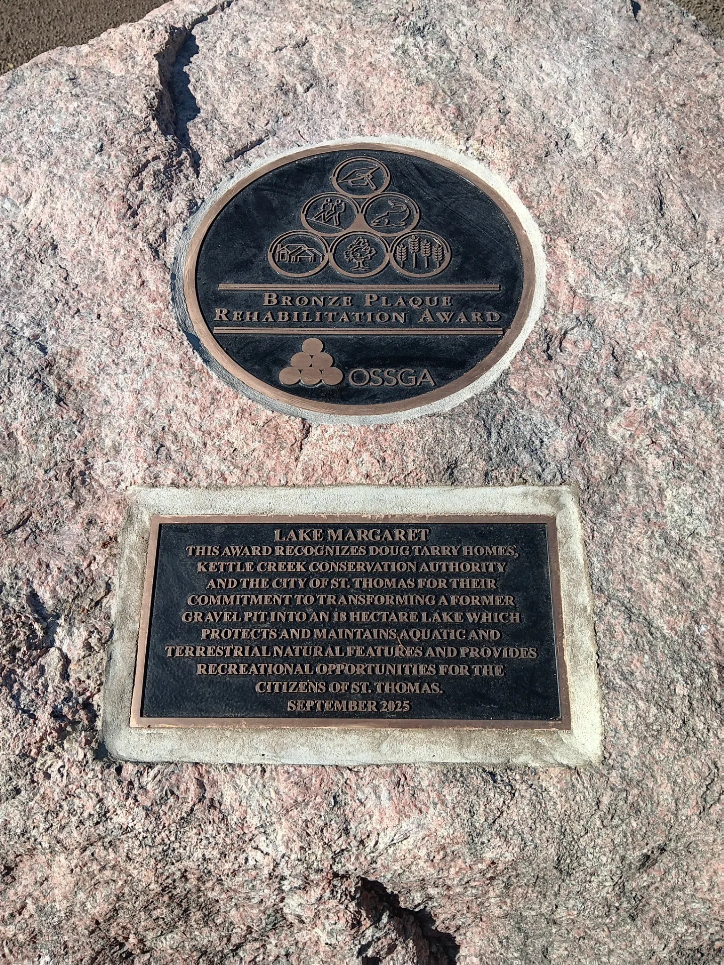 At a ceremony Tuesday morning, the Ontario Stone, Sand & Gravel Association (OSSGA) announced Lake Margaret is the recipient of their 2025 Bronze Plaque Award. The recognition is the OSSGA’s highest honour for environmental rehabilitation.