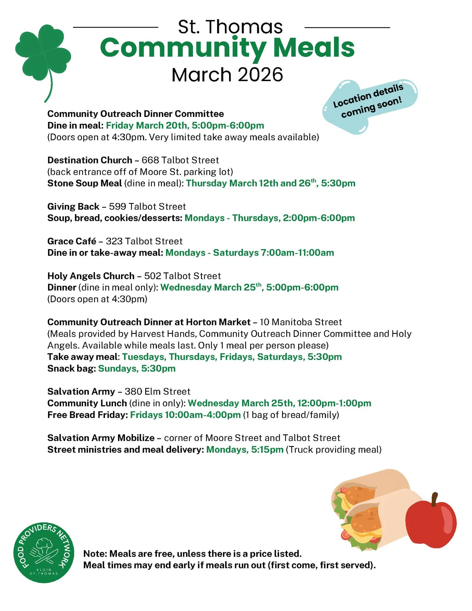 And Don’t Forget About Community Meals in both St. Thomas and Aylmer!